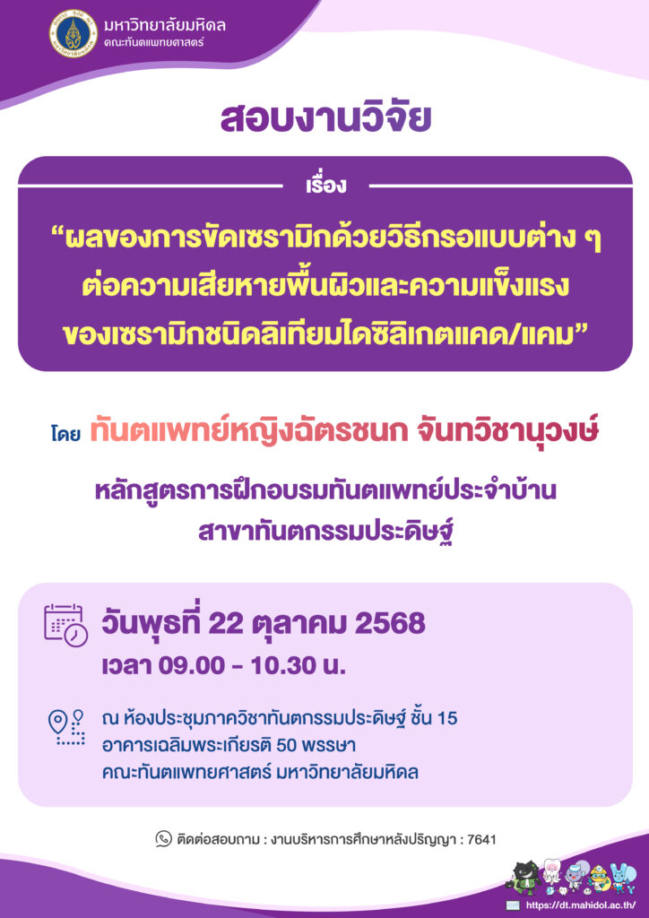 สถานที่ : ณ ห้องประชุมภาควิชาทันตกรรมประดิษฐ์ ชั้น 15