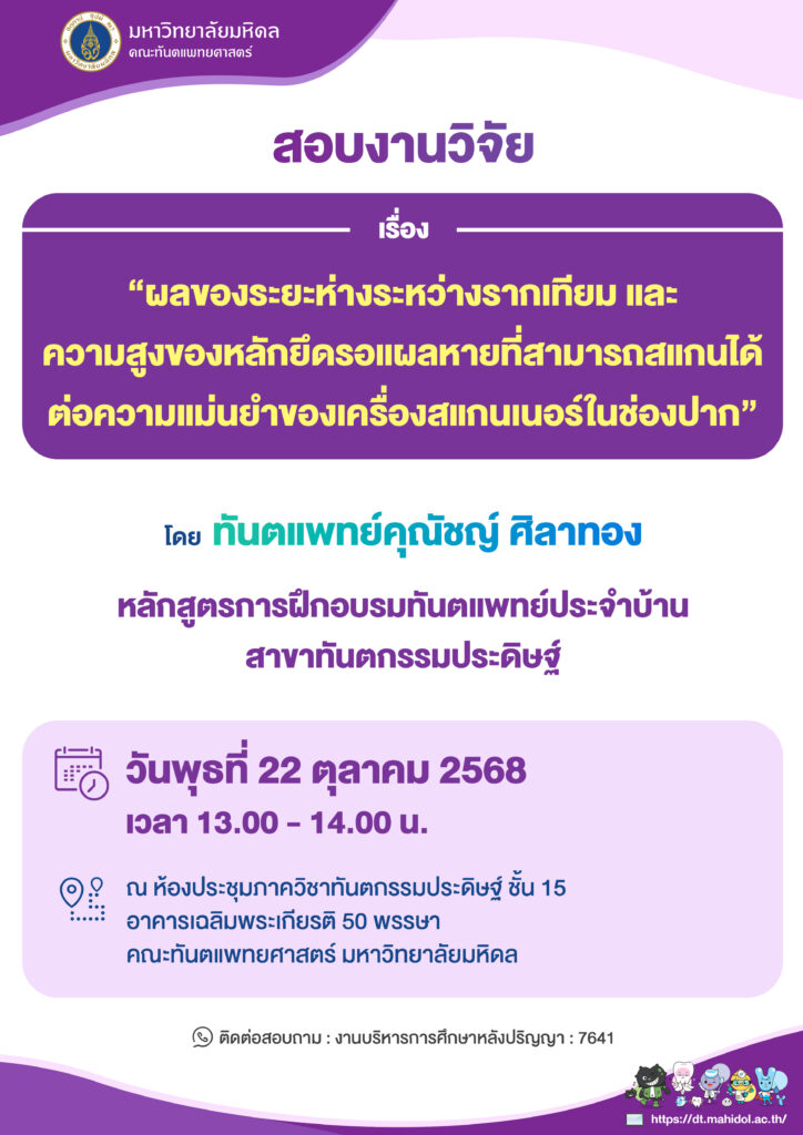 สถานที่ : ณ ห้องประชุมภาควิชาทันตกรรมประดิษฐ์ ชั้น 15