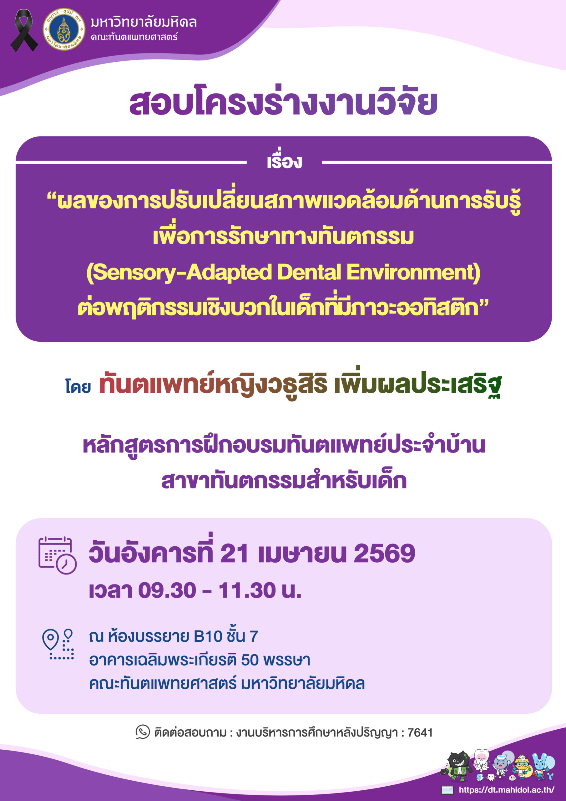 สถานที่ : ณ ห้องบรรยาย B10 ชั้น 7 อาคารเฉลิมพระเกียรติ 50 พรรษา