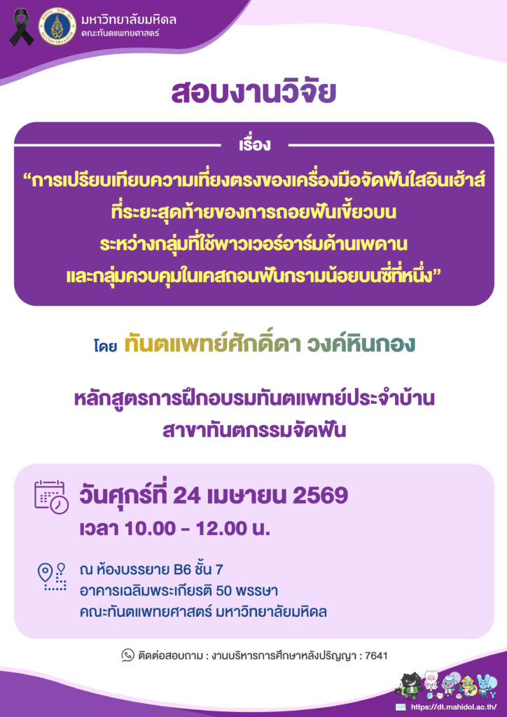 วันเวลาที่สอบ : 24 เมษายน 2569 เวลา 10.00 – 12.00 น. สถานที่ : ณ ห้องบรรยาย B6 ชั้น 7 อาคารเฉลิมพระเกียรติ 50 พรรษา