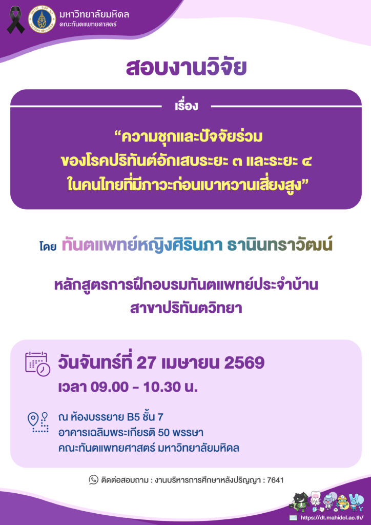 วันเวลาที่สอบ : 27 เมษายน 2569 เวลา 09.00 – 10.30 น. สถานที่ : ณ ห้องบรรยาย B5 ชั้น 7 อาคารเฉลิมพระเกียรติ 50 พรรษา
