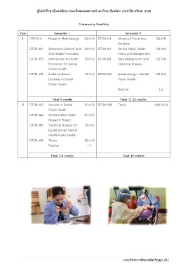 DTCM 693 Oral Health Promotion 3(3-0-6) DTCM 681 Data Management and