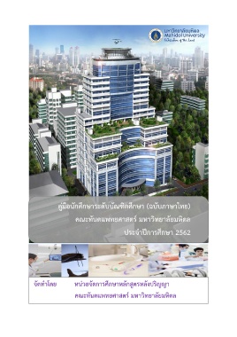 คูมอื นักศึกษาระดับบัณฑติ ศกึ ษา (ฉบับภาษาไทย) คณะทันตแพทยศาสตร มหาวิทยาลัยมหิดล ประจําปการศึกษา 2562 จดั ทําโดย หนว ยจัดการศกึ ษาหลักสตู รหลงั ปริญญา คณะทันตแพทยศาสตร มหาวิทยาลัยมหิดล