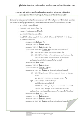 • ในกรณีทน่ี ักศึกษาไดผลคะแนน IELTS ตาํ่ กวา 5, TOEFL iBT ต่าํ กวา 54, TOEFL ITP ต่าํ กวา 480 และ