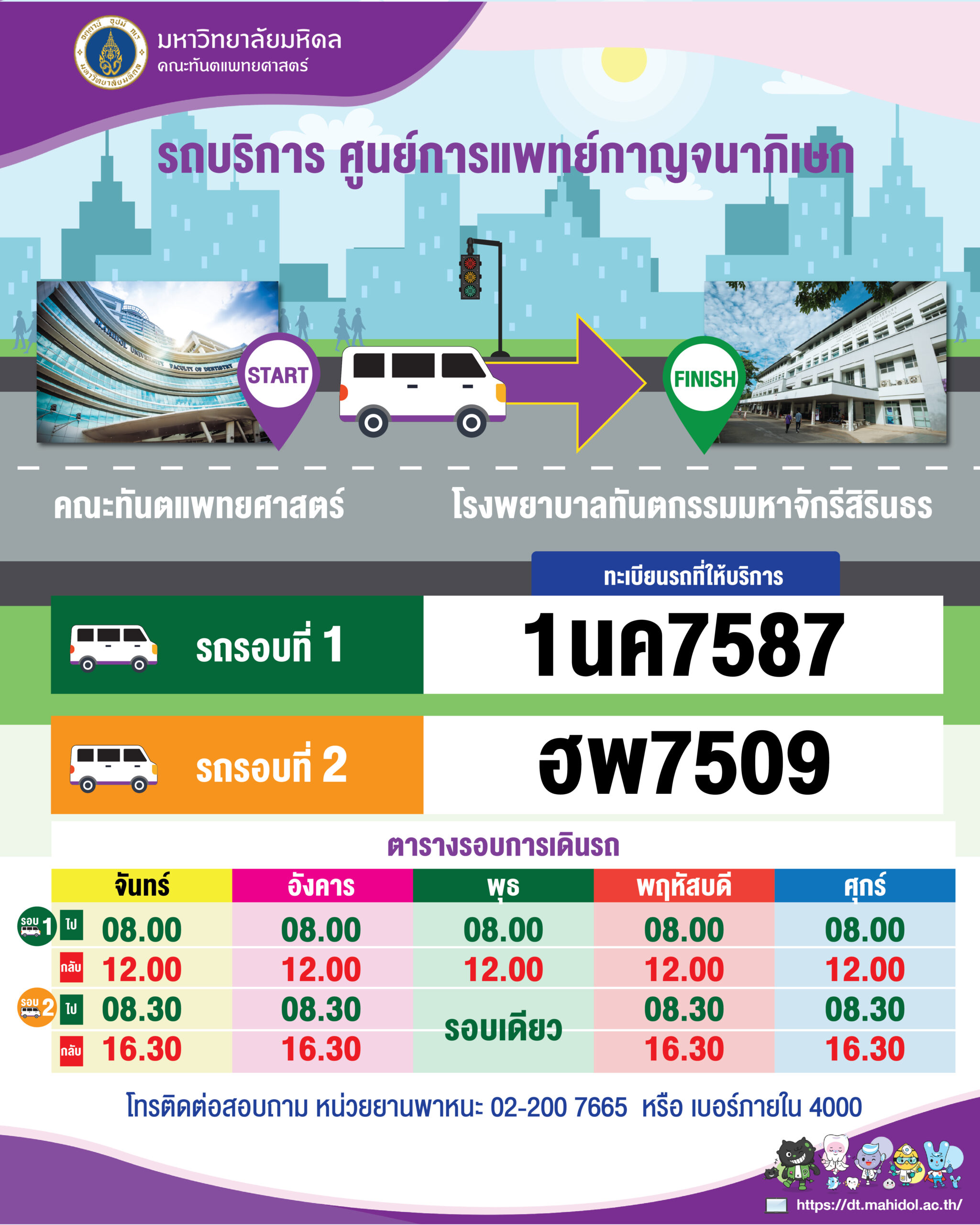 ให้บริการรถ ออกหน่วยตามโครงการทันตกรรมพระราชทานของสมเด็จพระเทพฯ ตามตารางที่กำหนด
